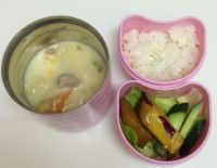 今日のお弁当はサプライズでアンちゃんの大好きなおじぱんのキャラ弁にしてあげた。